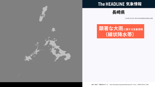 長崎県五島、線状降水帯による非常に激しい雨が続き災害発生の危険度が急激に高まる