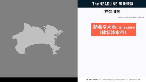 神奈川県東部、線状降水帯による非常に激しい雨が続き災害発生の危険度が急激に高まる