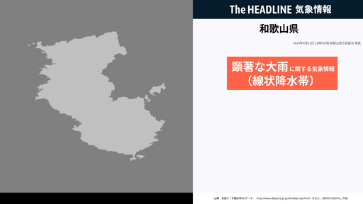 和歌山県北部、線状降水帯による非常に激しい雨が続き災害発生の危険度が急激に高まる