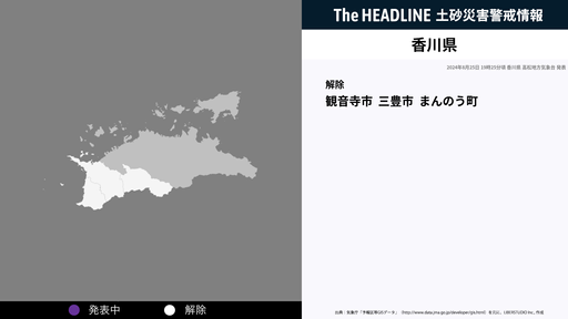 8月25日19時25分、香川県の土砂災害警戒情報が解除された