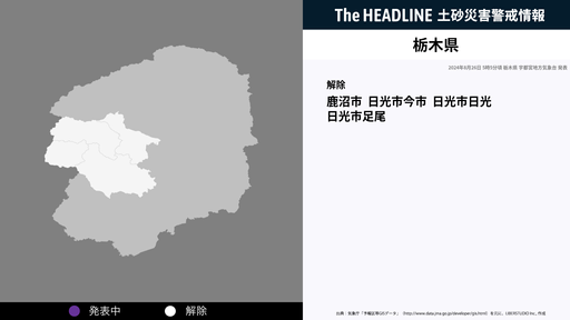 8月26日5時5分、栃木県の土砂災害警戒情報が解除された