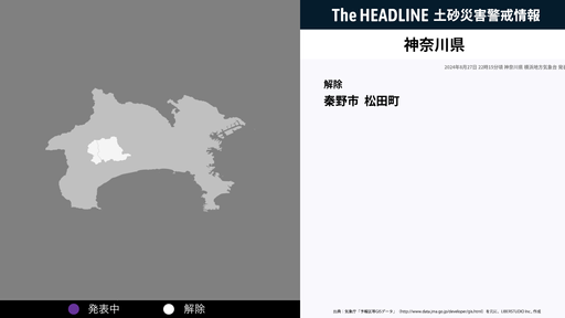 8月27日22時15分、神奈川県の土砂災害警戒情報が解除された