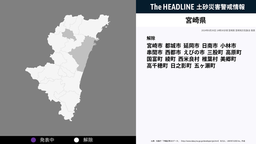 8月30日14時30分、宮崎県の土砂災害警戒情報が解除された
