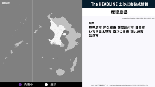 8月30日14時45分、鹿児島県の土砂災害警戒情報が解除された