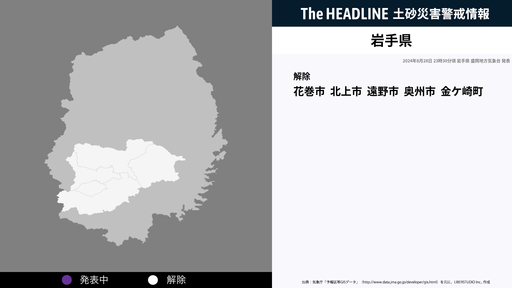 8月26日2時45分、岩手県の土砂災害警戒情報が解除された