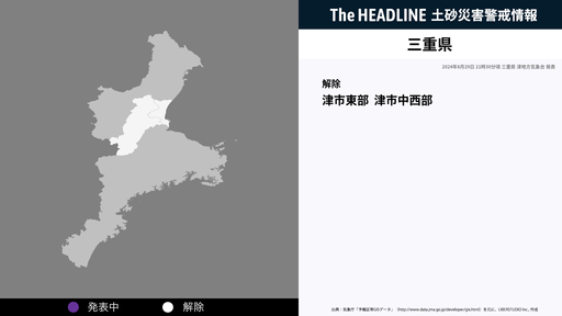 8月29日21時30分、三重県の土砂災害警戒情報が解除された