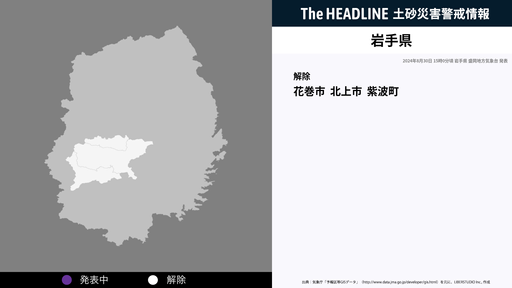 8月30日15時0分、岩手県の土砂災害警戒情報が解除された
