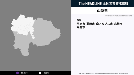 8月8日0時10分、山梨県の土砂災害警戒情報が解除された
