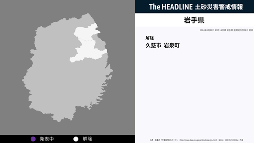 8月12日21時15分、岩手県の土砂災害警戒情報が解除された