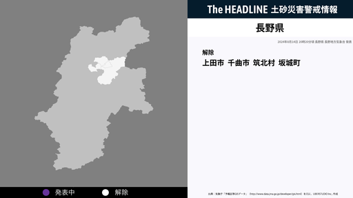 8月14日20時20分、長野県の土砂災害警戒情報が解除された