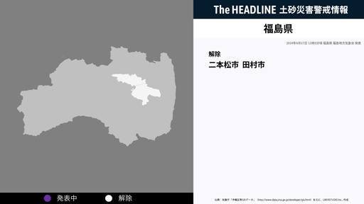 8月17日11時5分、福島県の土砂災害警戒情報が解除された