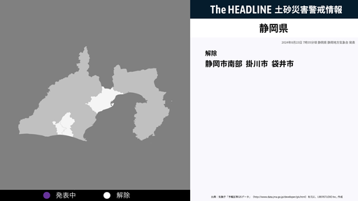 8月23日7時35分、静岡県の土砂災害警戒情報が解除された