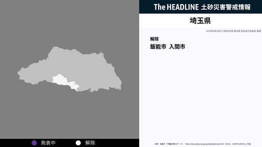 8月24日17時40分、埼玉県の土砂災害警戒情報が解除された