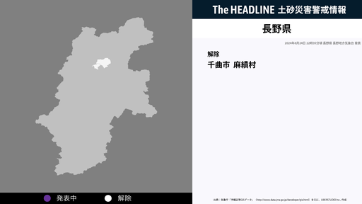 8月24日22時35分、長野県の土砂災害警戒情報が解除された