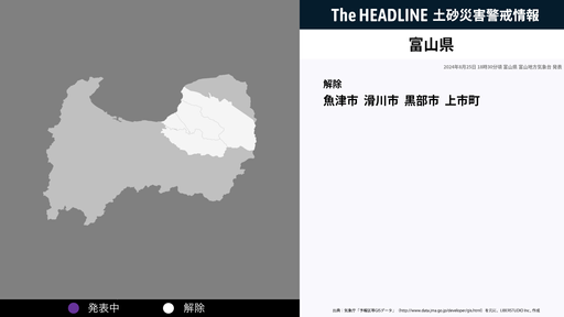 8月25日18時30分、富山県の土砂災害警戒情報が解除された