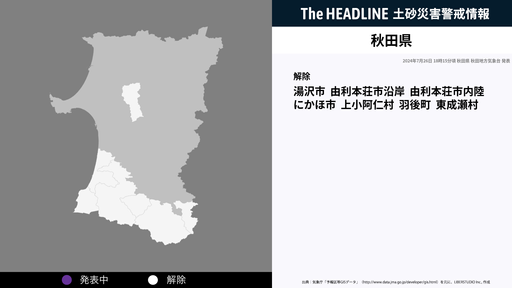 7月26日18時15分、秋田県の土砂災害警戒情報が解除された