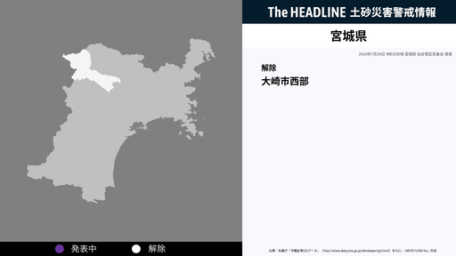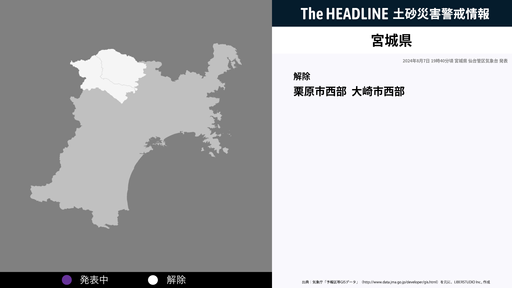 7月27日19時38分、宮城県の土砂災害警戒情報が解除された