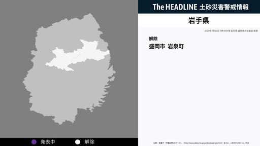 7月26日9時30分、岩手県の土砂災害警戒情報が解除された