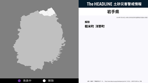 7月30日21時15分、岩手県の土砂災害警戒情報が解除された