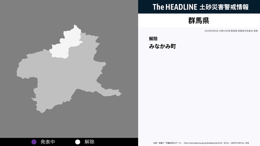 8月6日19時15分、群馬県の土砂災害警戒情報が解除された