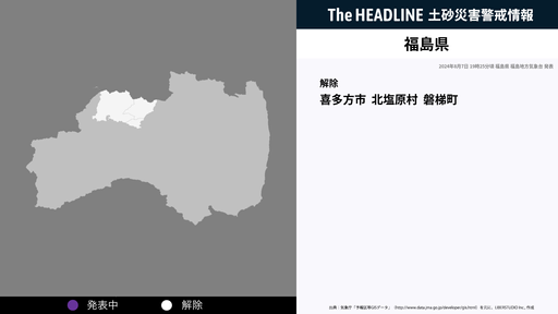 8月7日19時25分、福島県の土砂災害警戒情報が解除された