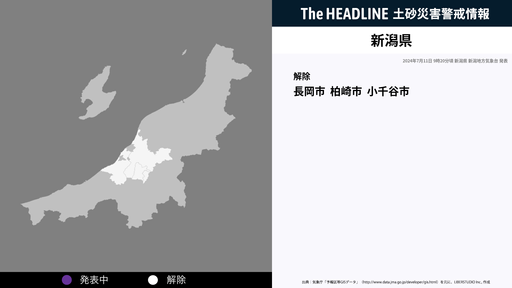 7月11日9時20分、新潟県の土砂災害警戒情報が解除された