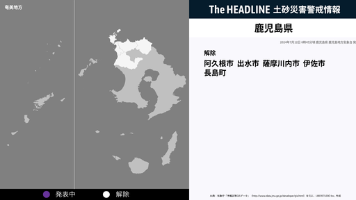 7月12日6時45分、鹿児島県の土砂災害警戒情報が解除された