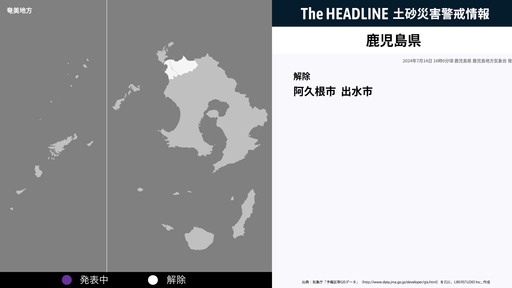 7月14日16時0分、鹿児島県の土砂災害警戒情報が解除された