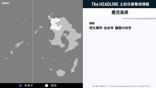 7月15日14時0分、鹿児島県の土砂災害警戒情報が解除された