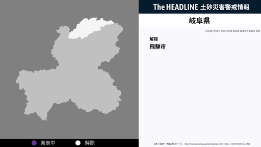 7月15日23時10分、岐阜県の土砂災害警戒情報が解除された
