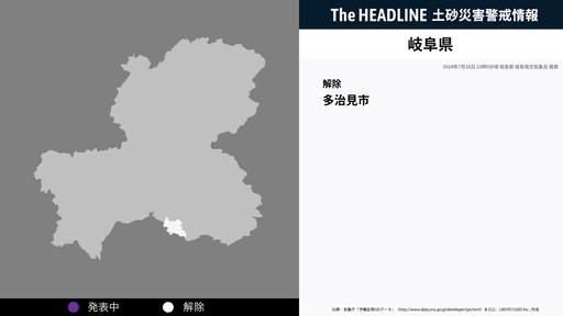 7月16日23時0分、岐阜県の土砂災害警戒情報が解除された