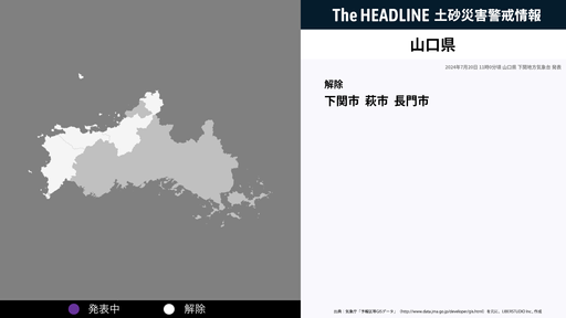 7月20日11時0分、山口県の土砂災害警戒情報が解除された