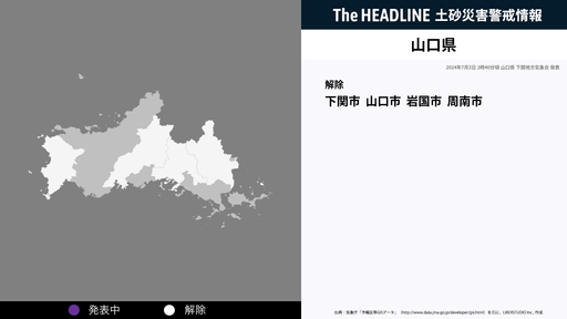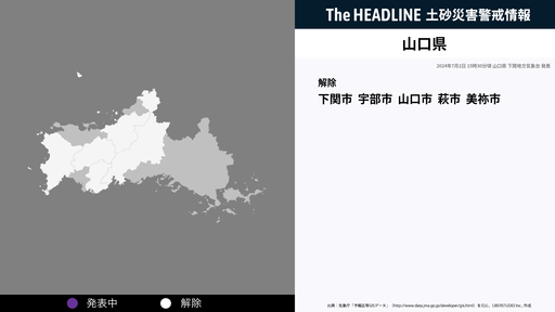 7月2日2時40分、山口県の土砂災害警戒情報が解除された