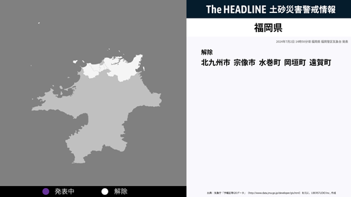 7月2日14時50分、福岡県の土砂災害警戒情報が解除された