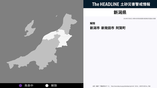 7月8日15時30分、新潟県の土砂災害警戒情報が解除された