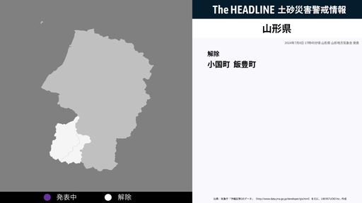 7月9日16時12分、山形県の土砂災害警戒情報が解除された