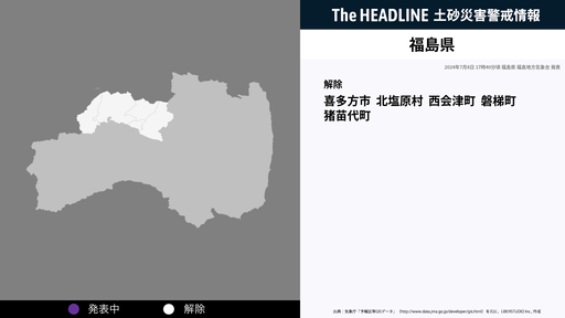 7月8日17時40分、福島県の土砂災害警戒情報が解除された
