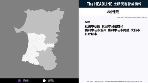 7月10日23時20分、秋田県の土砂災害警戒情報が解除された