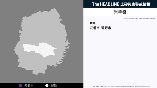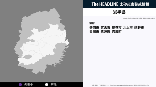 7月9日17時33分、岩手県の土砂災害警戒情報が解除された