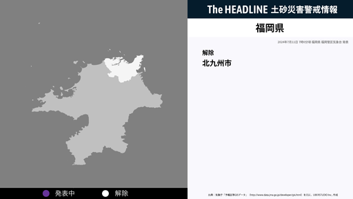 7月11日7時0分、福岡県の土砂災害警戒情報が解除された
