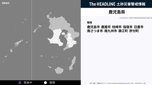 6月21日10時0分、鹿児島県の土砂災害警戒情報が解除された