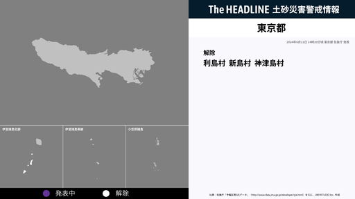 6月21日14時20分、東京都の土砂災害警戒情報が解除された