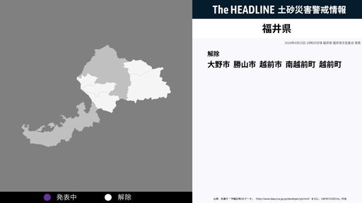 6月23日19時25分、福井県の土砂災害警戒情報が解除された