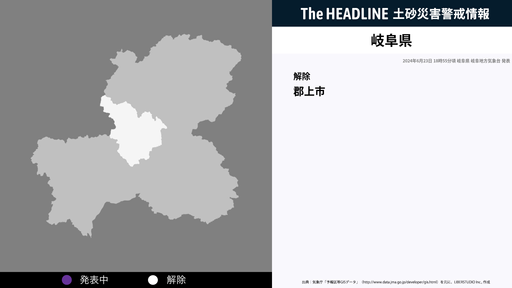 6月23日18時55分、岐阜県の土砂災害警戒情報が解除された
