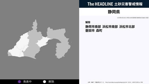 6月28日20時10分、静岡県の土砂災害警戒情報が解除された