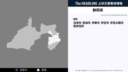 6月29日3時30分、静岡県の土砂災害警戒情報が解除された