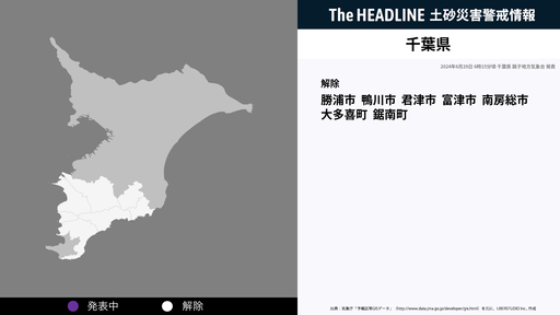 6月29日6時15分、千葉県の土砂災害警戒情報が解除された