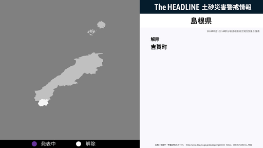 7月1日14時5分、島根県の土砂災害警戒情報が解除された