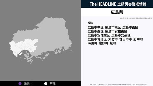 7月1日10時50分、広島県の土砂災害警戒情報が解除された