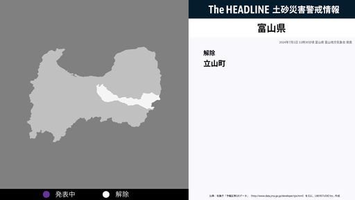 7月1日11時30分、富山県の土砂災害警戒情報が解除された